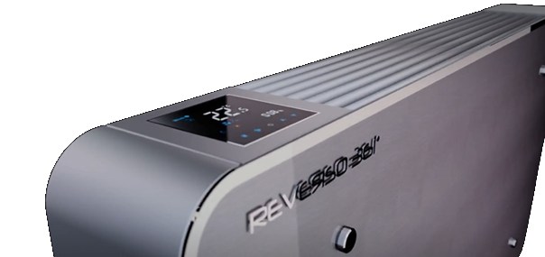 A Reverso a legvékonyabb fan coil a piacon. 12 cm-es valódi vastagságával, teljes magasságában, 10%-kal vékonyabb, mint bármely közvetlen versenytárs a piaci szegmensében. A gépet megkülönbözteti az elülső szívórácsok hiánya, köszönhetően az innovatív szellőzőrendszernek, amely javítja a teljesítményét negatív nyomás mellett. A Reverso 4 termékcsaládból áll, hogy a maximális rugalmasságot biztosítsa minden telepítésnél.